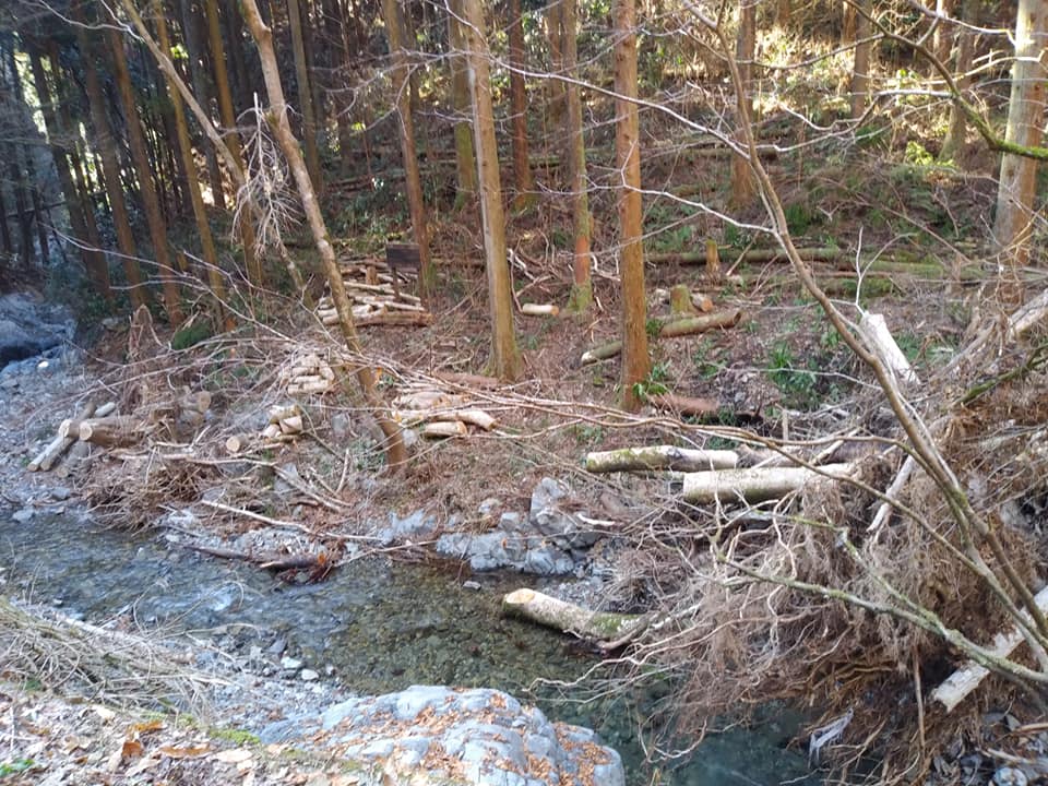 台風19号で大きな被害を受けた小下沢林道の補修を今月も行いました。
