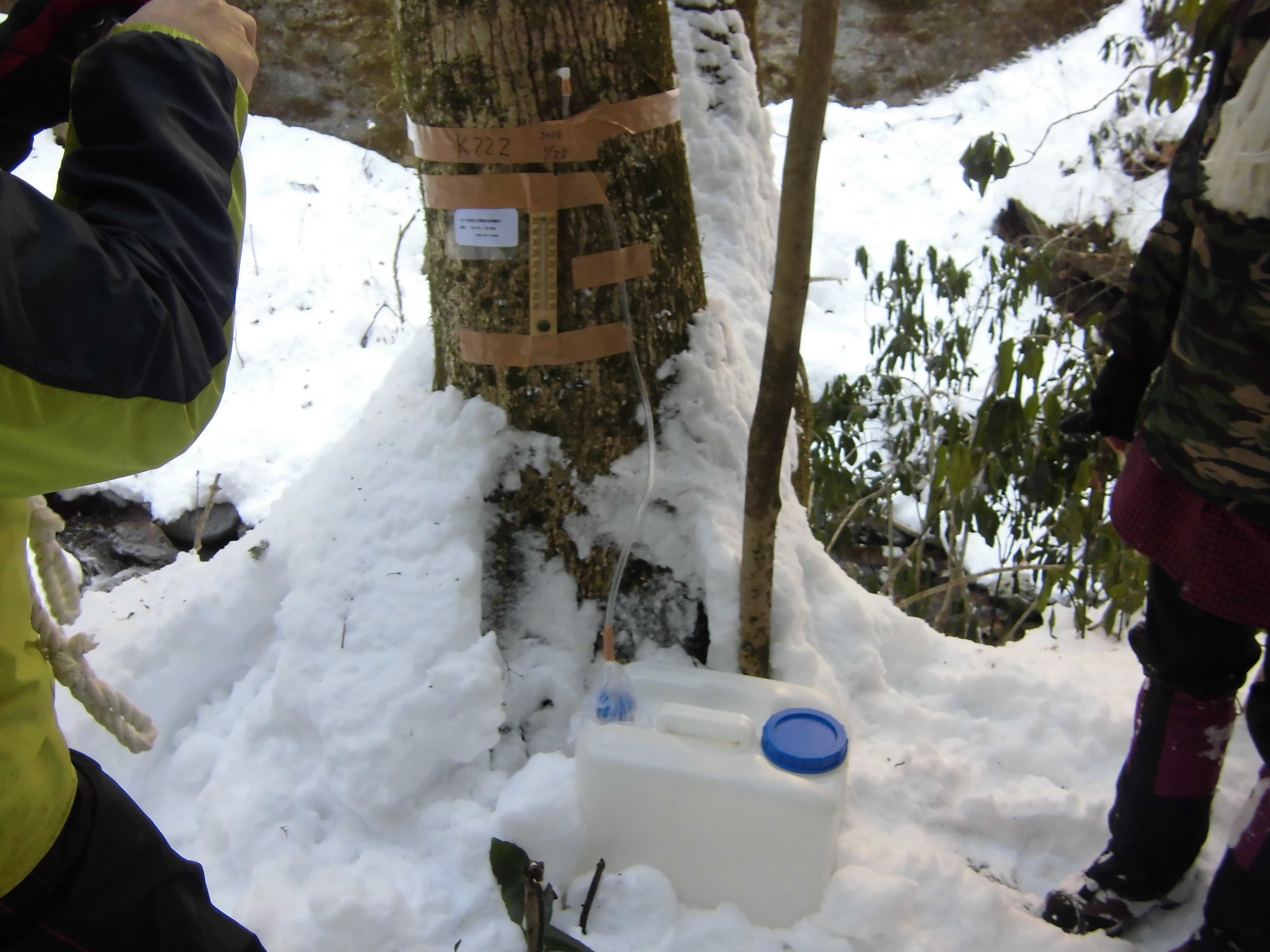 今回は、流動時期を正確に把握し採取器具を取り付ける必要がありので、その取り付けを積雪のある中、行ってきました。