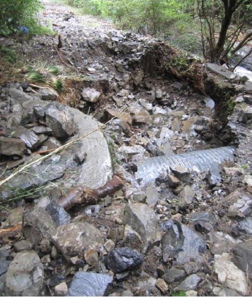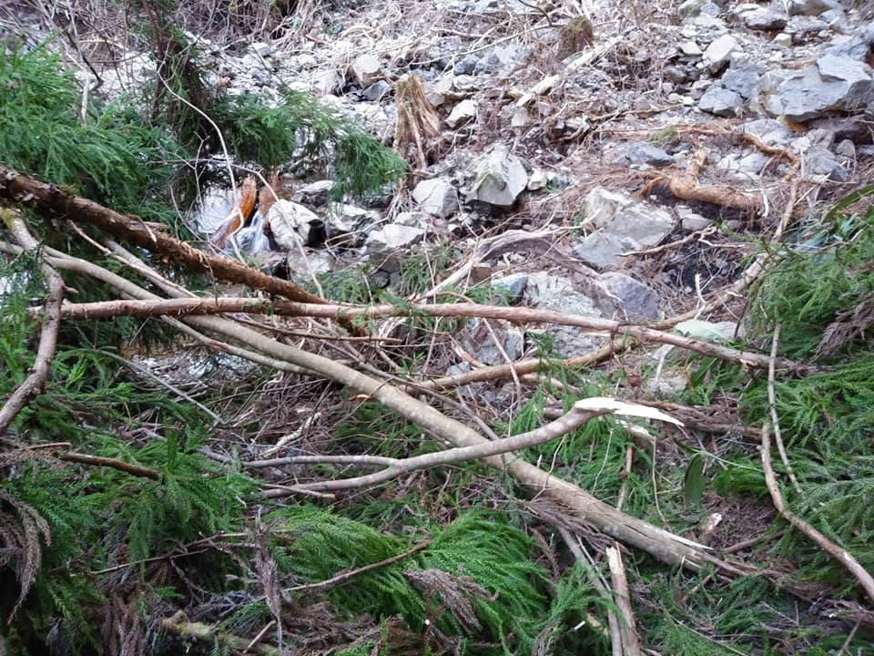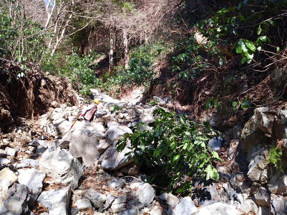 一番被害の多きかった場所は林道がなくなってしまったので、山側の部分を通れるように回収しました。ここは人力での修復はできませんね。数年かかって重機を入れての工事になるでしょう。