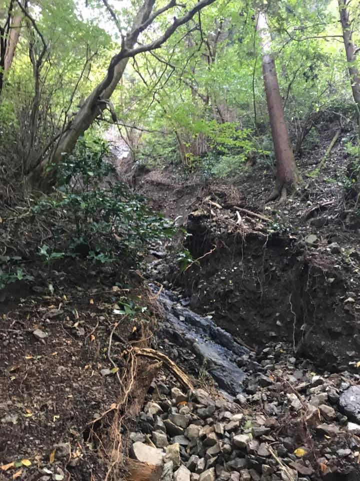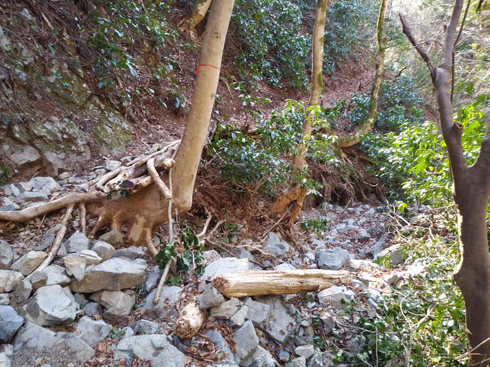 景信山への登山道は滝までは渓谷のようになってるようですね。その上の登山道や植生には影響は少なかったようです。