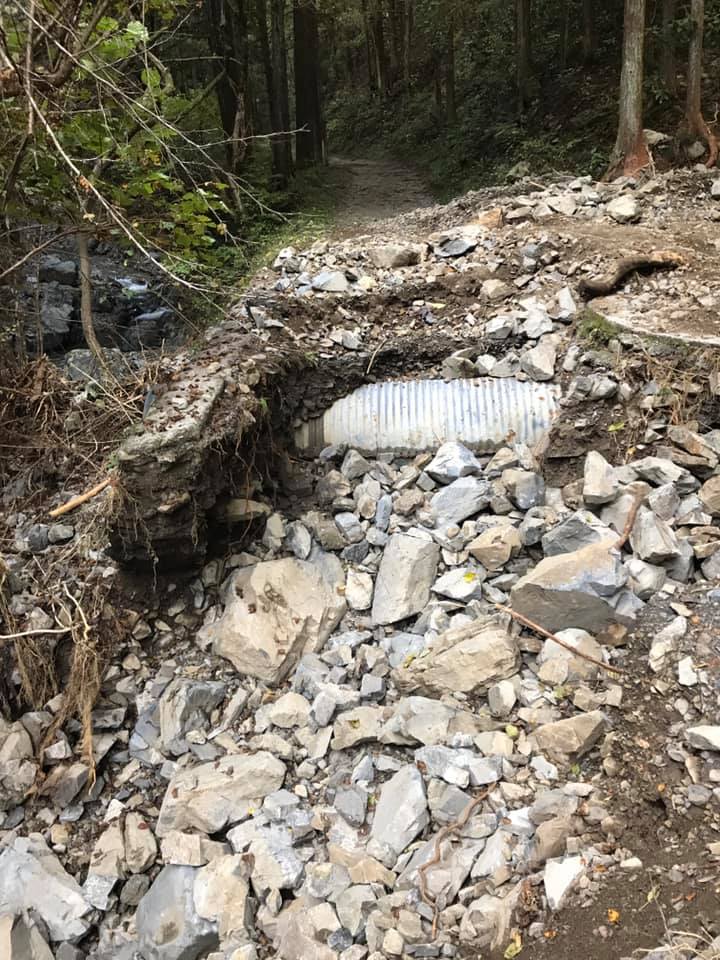 林道はまだまだ修復する場所があります。一番ひどい林道が流された場所の修復も行います。倒木の処理も進みました。