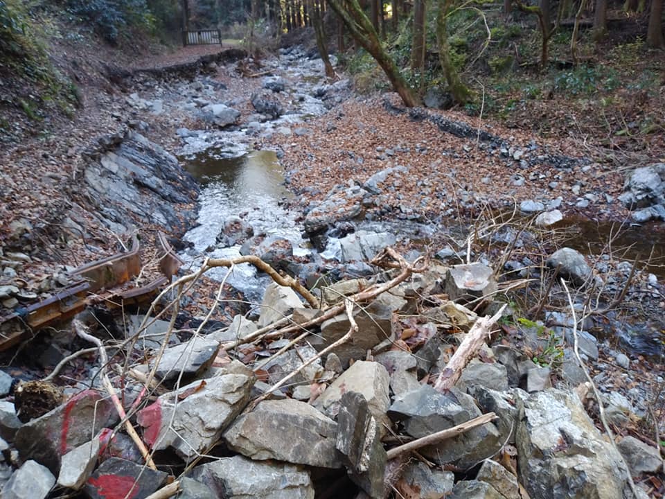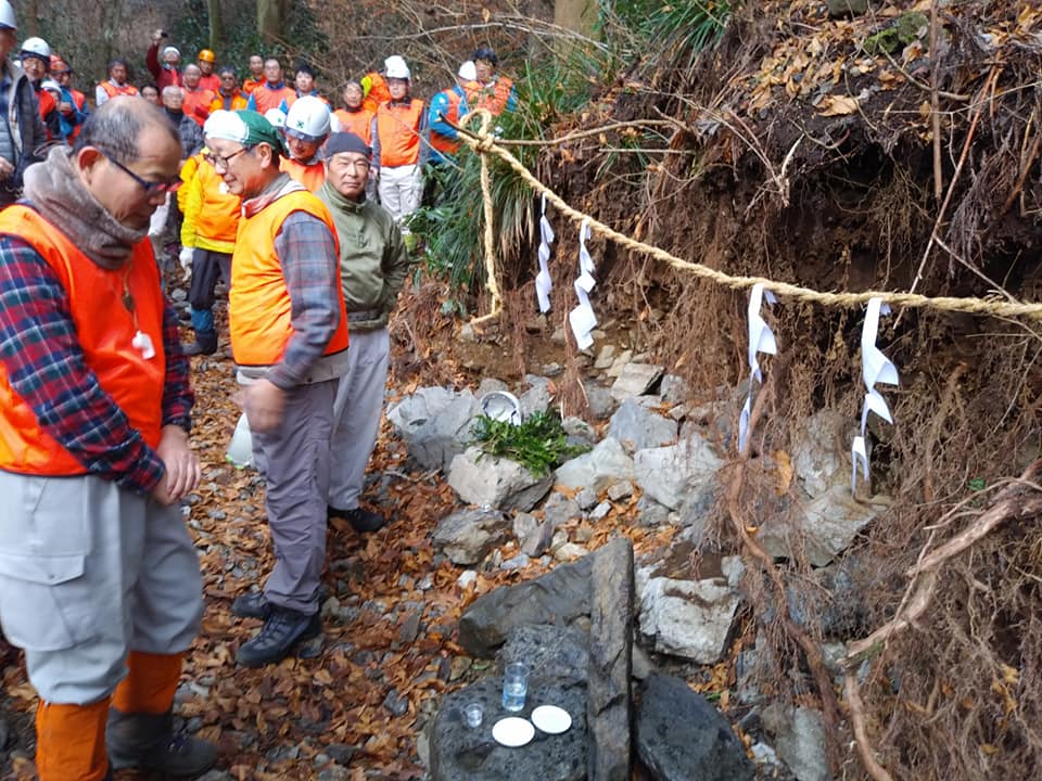 私は4月の植樹祭に向けて、豪雨で荒れた沢を石を積みなおして歩きやすくしました。石墨は腰にきますね。