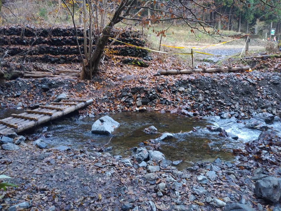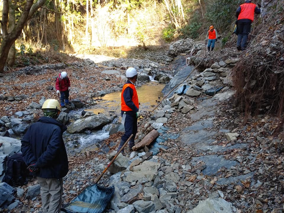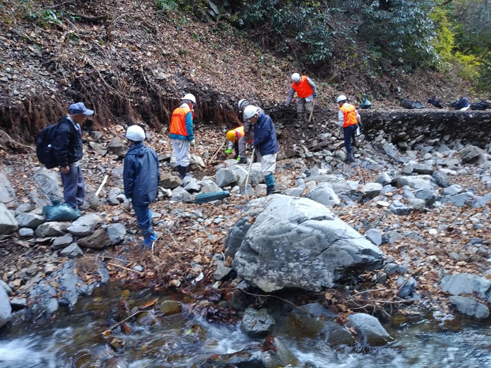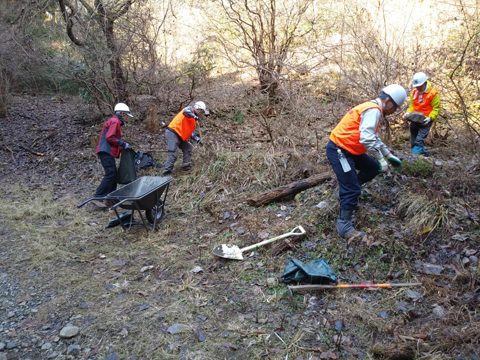 台風19号で大きな被害を受けた小下沢林道の補修を今月も行いました。