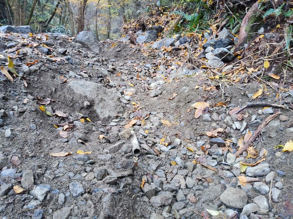 木下沢林道は、数か所土砂崩れで埋まり、ゲート付近では