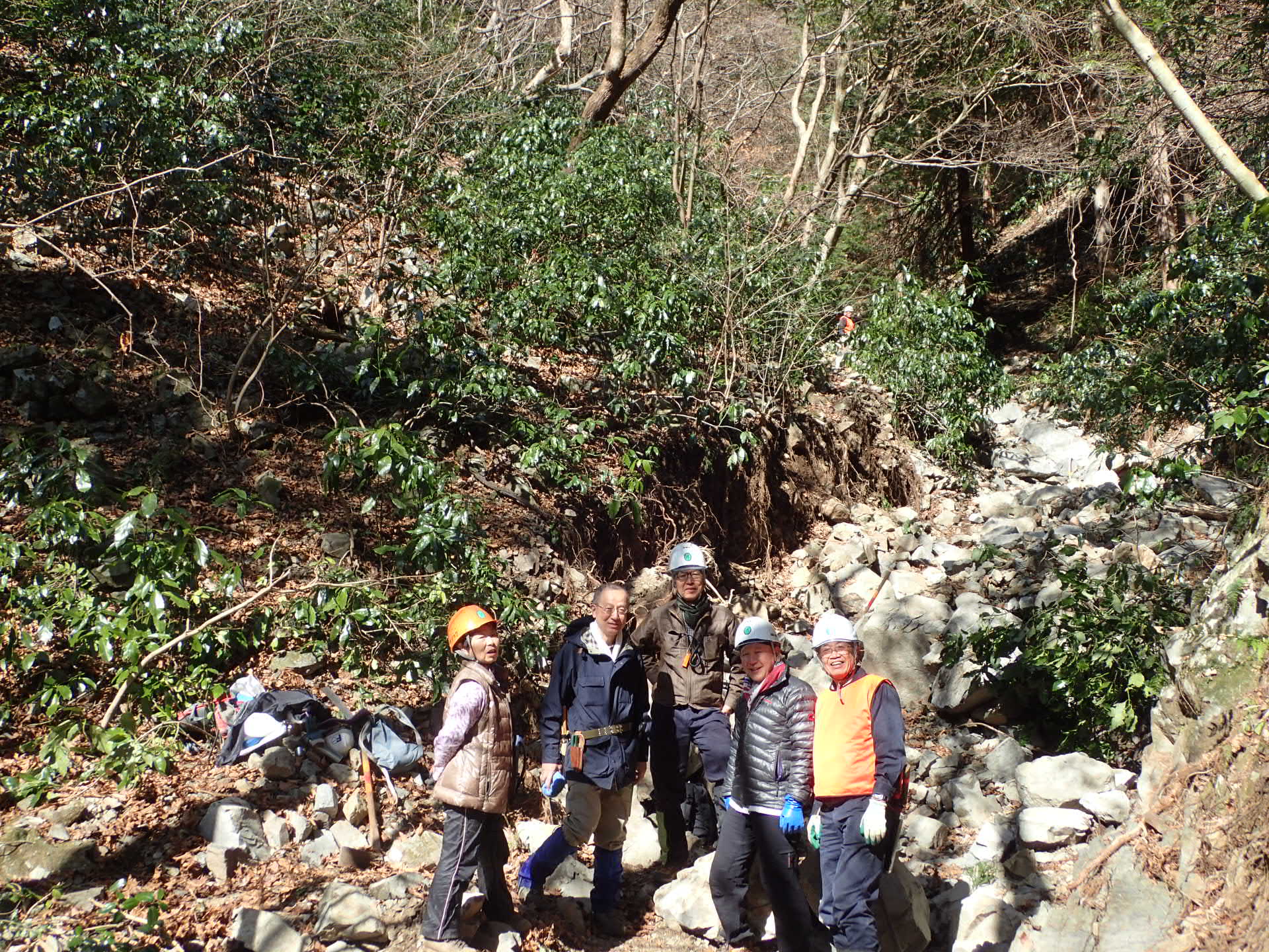 5人で行って歩きやすくなりました。ベースから離れている場所なので道具小屋も新設しました。