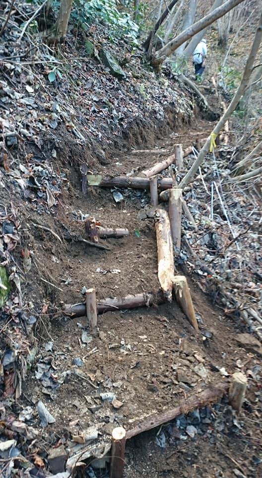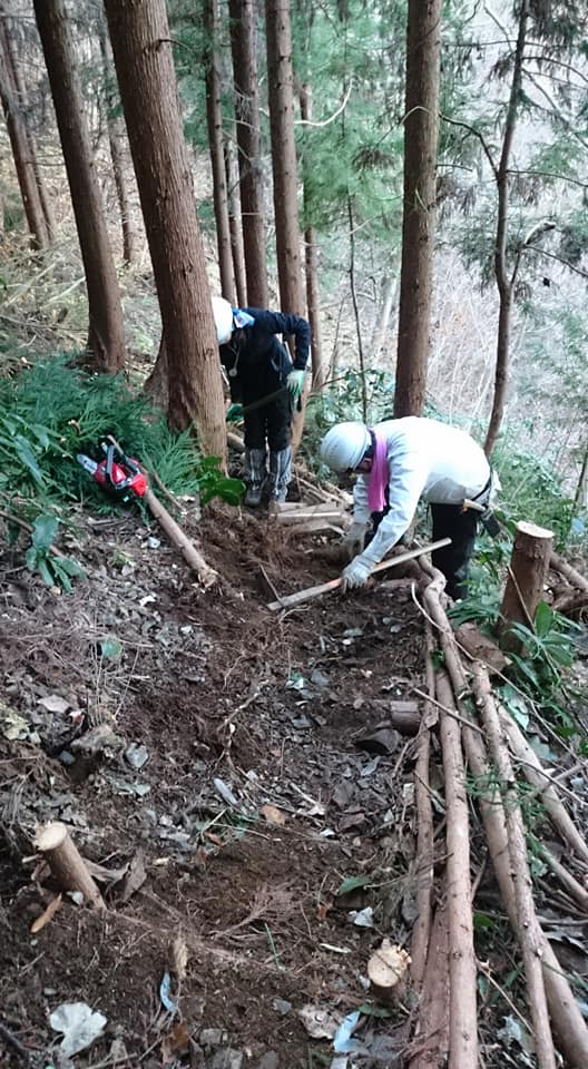 C班は今日はこれからの間伐・除伐のための道作りです。急峻なの場所での作業です。