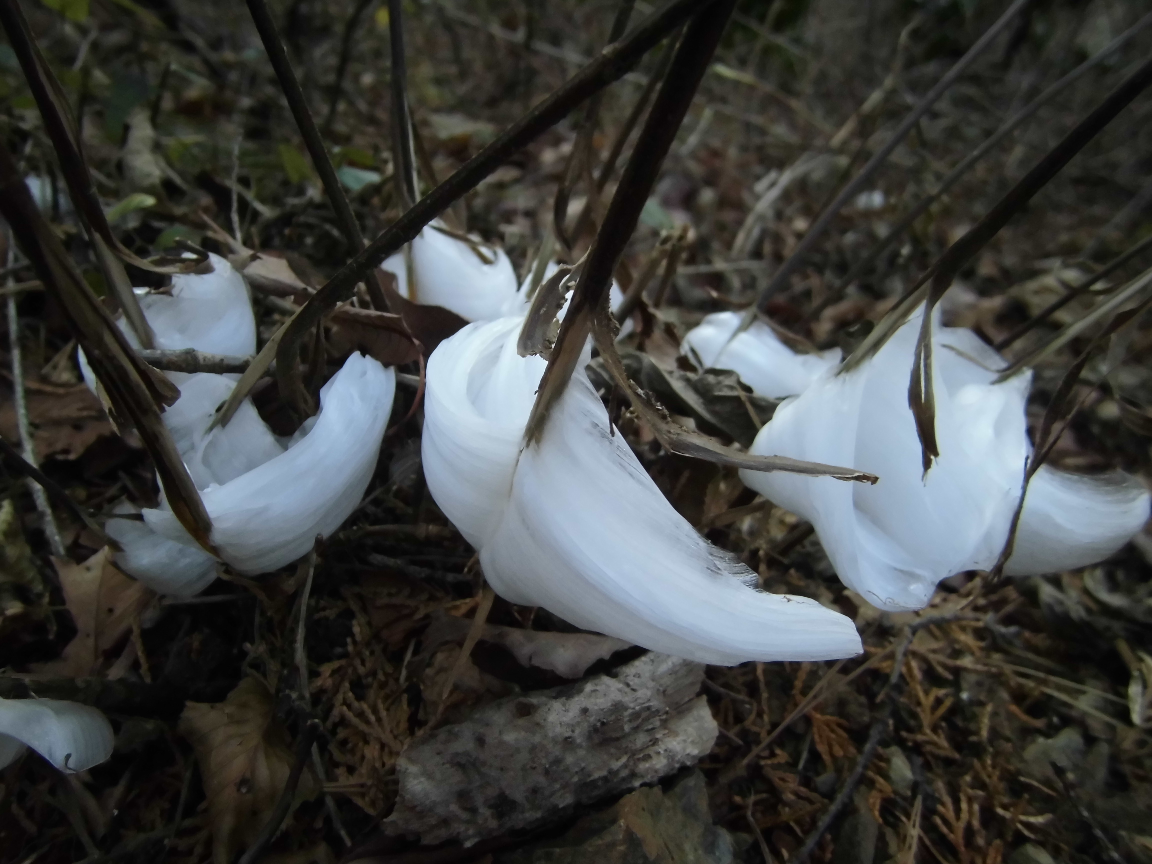 2018年1月13日(土)の定例作業日に、調査班が上の横道で大きく成長したシモバシラができていましたと報告がありました。